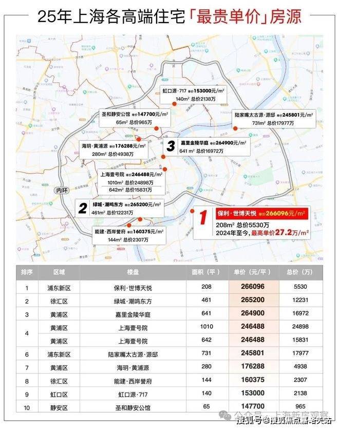 2025上海豪宅单价超20万/m²的成交量排行中,保利世博天悦甚至力压新天地、外滩、陆家嘴、苏河湾、徐汇滨江等一众热门板块新盘,问鼎上海豪宅之巅!
