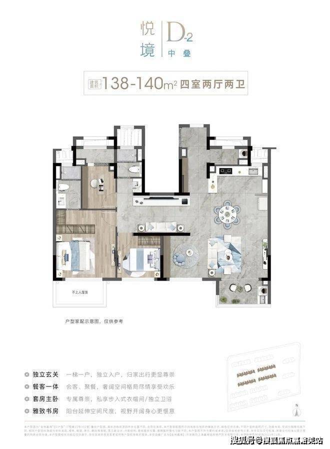 叠加横厅(建面约)141m²下叠四室两厅三卫