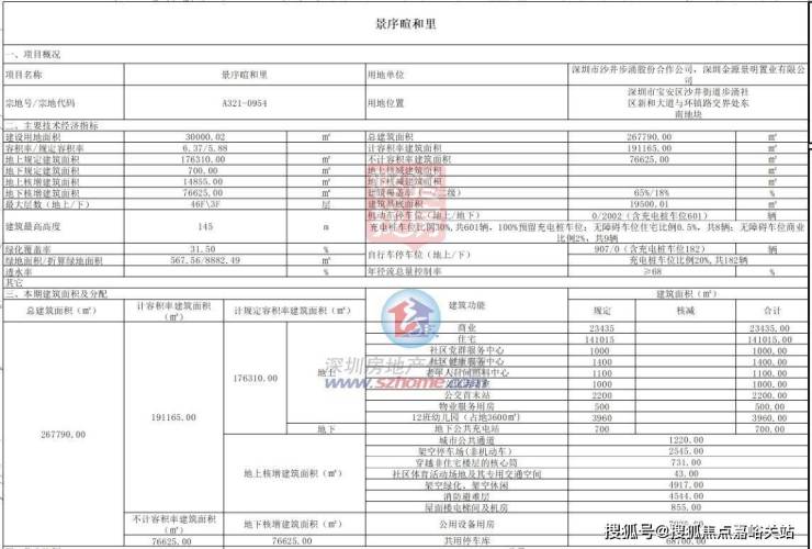 项目具体位置位于宝安区沙井街道新和大道与步涌路交会处,用地面积为30000㎡,总建面267790㎡,容积率为5.9,配建社区党群服务中心1000㎡、社区健康服务中心1400㎡、老年人日间照料中心1100㎡、12班幼儿园(占地3600㎡)、文化活动室1000㎡、地下公共充电站700㎡、公交首末站2200㎡、社区体育活动场地占地1500㎡。