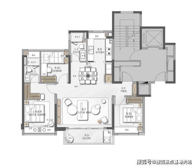 相比126㎡户型,144㎡户型在设计上采用大面积方形厨房,为家庭成员之间的互动提供了充足空间;而超大横厅设计的加持使得动区更加宽敞明亮,足以容纳全家人的各种爱好。