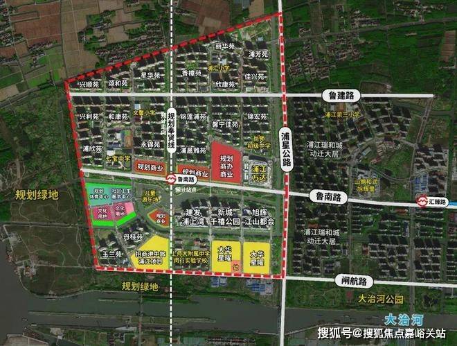 项目占位闵行区浦江滨江板块,地处浦江第一湾三水交汇核心,东侧为市政绿带,与上师大附中(九年一贯制)一路之隔,南侧为公共绿地,西侧为幼儿园,北侧为景观河道,西北侧为现状住宅(大居)。