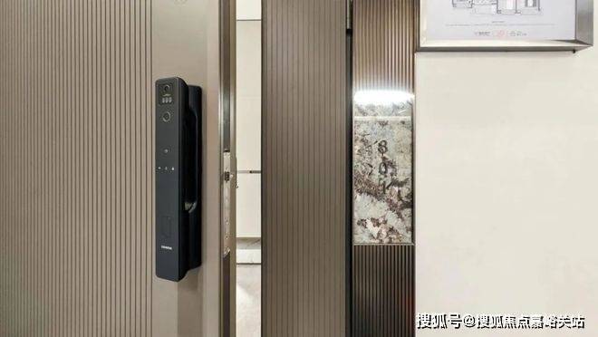 尚未入户,自带猫眼的四合一智能门锁,配合定制的门牌号与logo集合而成的入户门,彰显着主人的品位与尊贵地位。