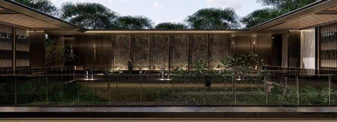 第四重:后场廊园两侧采用金属格栅与景墙融合打造,于细微处见真章、低调处见奢华;