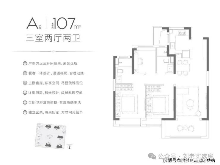 项目建面约107㎡户型集 LDBK一体化、玄关入户、动静分区设计于一体,在功能性与舒适度上几乎都做到了极致!