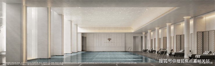 奢朗尺度,打造满水式流体游泳体验,泳池以奢材定制,高品质美学致敬城市。