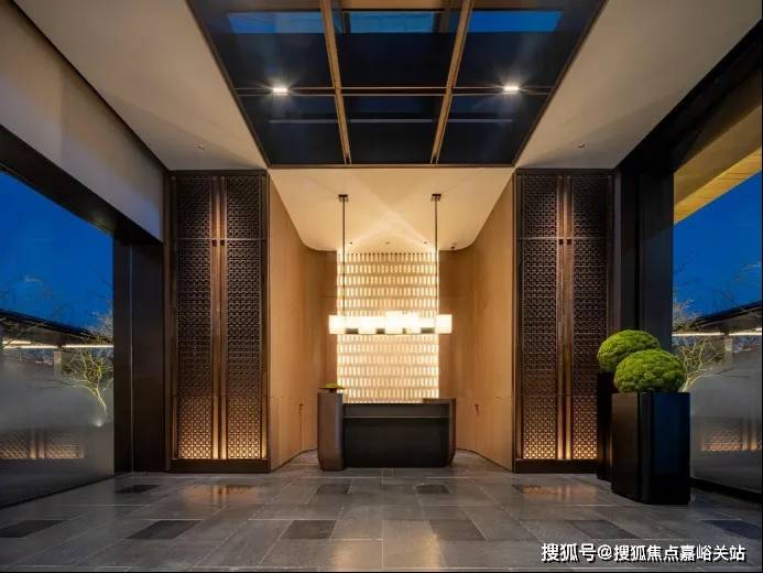 还未走进示范区,迎面而来的大门,就足以让人感受到项目的恢弘气势—— 35米长、6米高的超大尺度门堂,同区域内可谓是绝无仅有。一瞬间,东方美学背后所承载的历史厚重感,透过门堂瞬间击穿感官,让人不自觉升起对文化和历史的敬畏感。