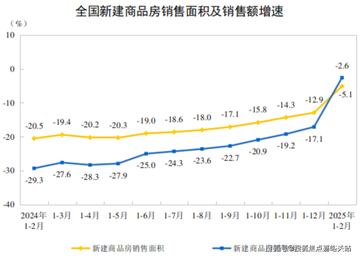根据国家统计局数据,1-2月份,新建商品房销售面积10746万平方米,同比下降5.1%,降幅比上年全年收窄7.8个百分点;其中住宅销售面积下降3.4%,降幅收窄10.7个百分点。新建商品房销售额10259亿元,下降2.6%,降幅收窄14.5个百分点;其中住宅销售额下降0.4%,降幅收窄17.2个百分点。