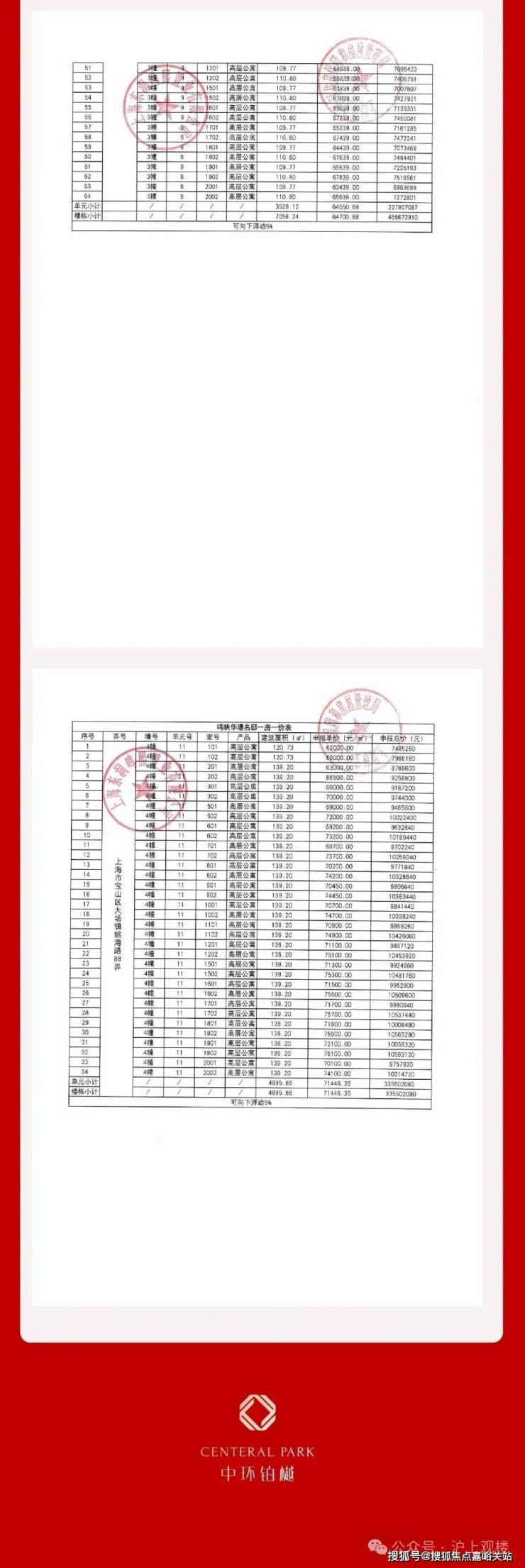 共计 98席,附一房一价表