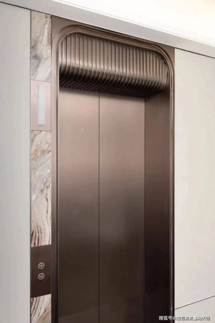 比如电梯,轿厢门用了 流畅弧线勾勒的金属,电梯轿厢地面和呼叫面板采用了 意大利GUCCI红石材,一看就很别致;