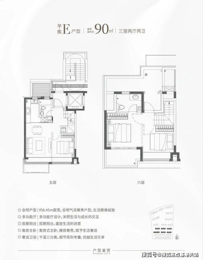特别是这个E户型,建面仅约90㎡对于想住叠加但预算有限的购房者来说面宽约6.45米,上下动静分离带是个不错的选择!
