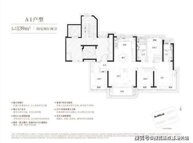 边套主卧更是 进阶版270转角飘窗套房设计,收纳空间更充足、各空间尺度感更强!