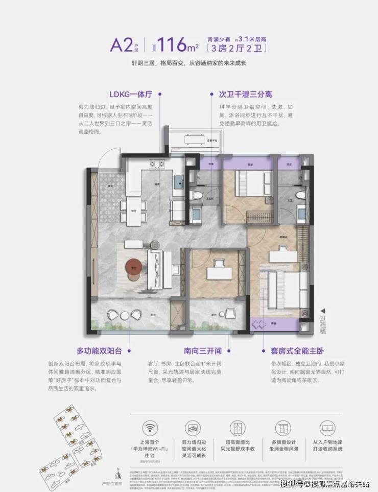 室内精装,除了采用方太厨具、德国高仪的龙头、德国唯宝的陶瓷洁具、科勒的卫浴 这样的国内外一线大牌,更重磅打造 上海首个华为坤灵Wi-Fi6智慧入户社区
