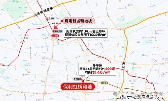 2021年开通的14号线就是最后一条穿过静安寺、新天地、豫园、陆家嘴的烫金大动脉。而保利虹桥和著就是这条轨交沿线,最后一个距离轨交约200米的真轨交盘。