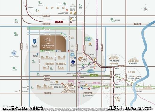 整个南翔板块区位优势明显:距虹桥核心区直线距离约13KM,享受大虹桥强势能级辐射。同时承接虹桥国际开放枢纽北向拓展带重要节点,一脉虹桥发展金线,南翔进阶大虹桥主城生活区,成为中央商务配套区和高品质国际化社区目的地。