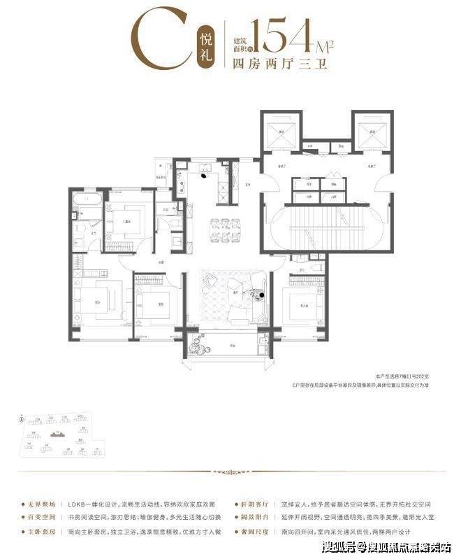 除此之外,项目还有少席在售的建面约130㎡4房、建面约154㎡顶奢4房。