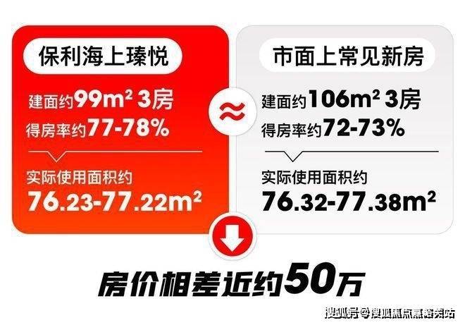 从功利性角度来说:由于高得房率,保利海上瑧悦这一批次建面约99㎡的3房,套内的实际使用面积约等于其他新房约106㎡的产品。