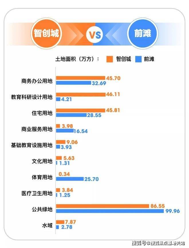 当然,很多人对这个体量不太有概念,我们以熟悉的前滩为标杆,来看一下智创城的整体配套体量,在上海占据怎样的位置: