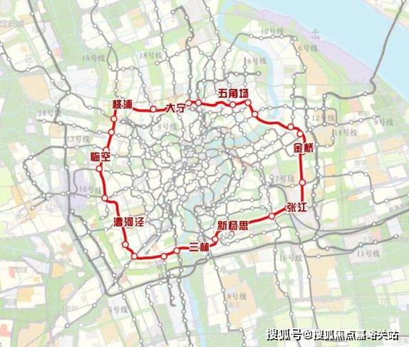 线路基本沿中环区域铺设,途径浦西的智创城板块、大宁、五角场副中心和浦东黄金中环带,据悉可与21条轨交换乘