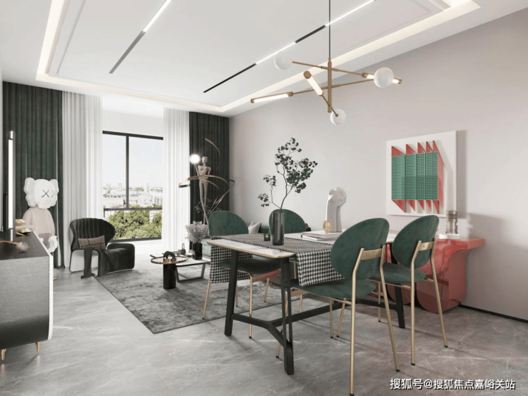独立的入户玄关,出入皆有生活的仪式感,更方便做细致的收纳分区;客厅、餐厅相互独立,客厅南连宽景阳台,餐厅北连飘窗,让空间得以延展的同时,也让阳台的功能多样化;厨房就近连接餐厅,动线清晰,客餐厅通透明亮。