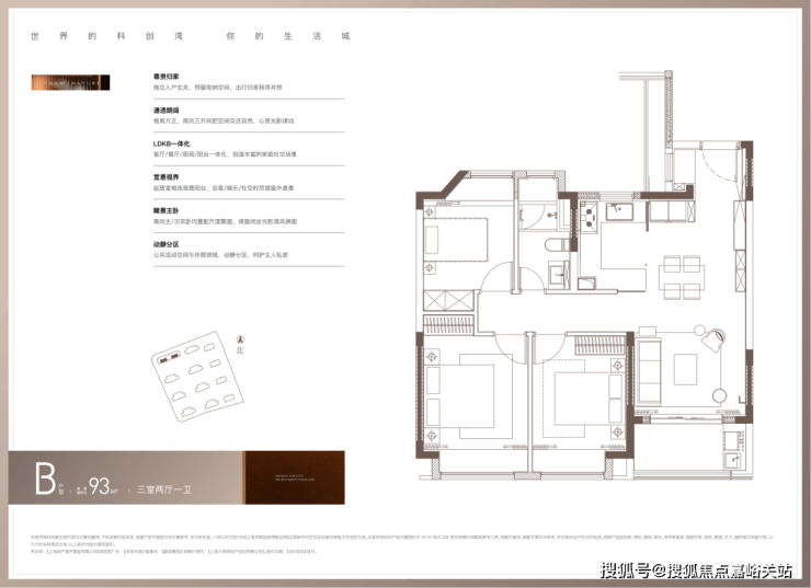 「尚湾林语」即将推出的约93㎡三房户型, 打破了传统紧凑型小户型的局限,其得房率接近80%,远超同类市场产品。