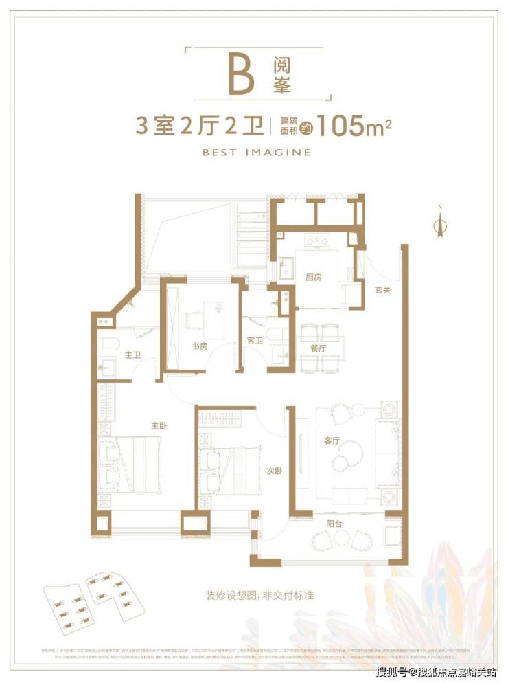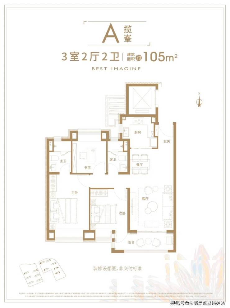 建面约105㎡三房两厅两卫,两个卧室朝南,客厅朝南,三开间朝南的方正格局,这个户型也许能让更多人重新发现3房的价值。