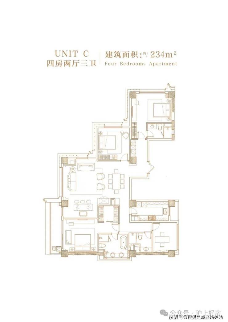 建面约234㎡4房3厅3卫▼
