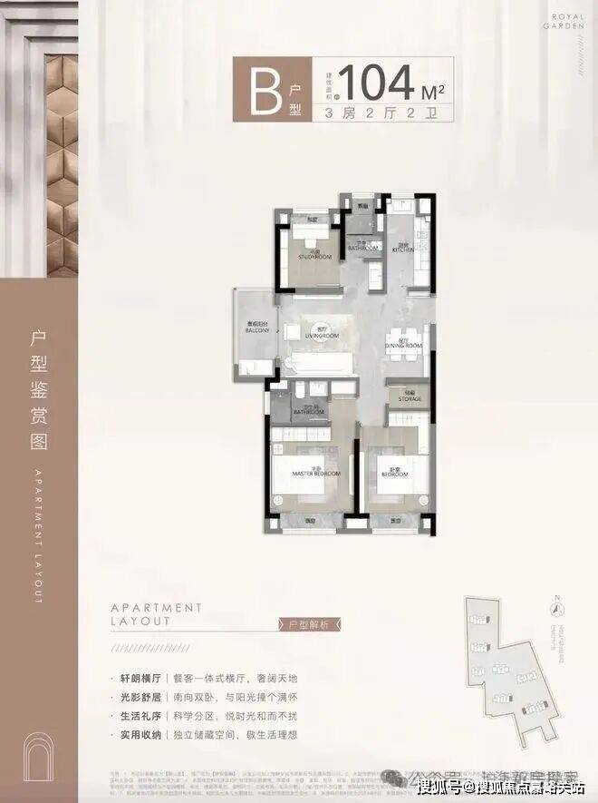 建面约104㎡3房2厅2卫▼