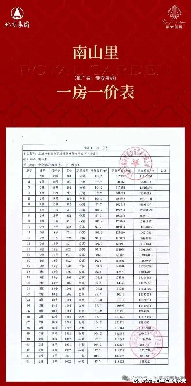 静安玺樾三期一房一价表▼