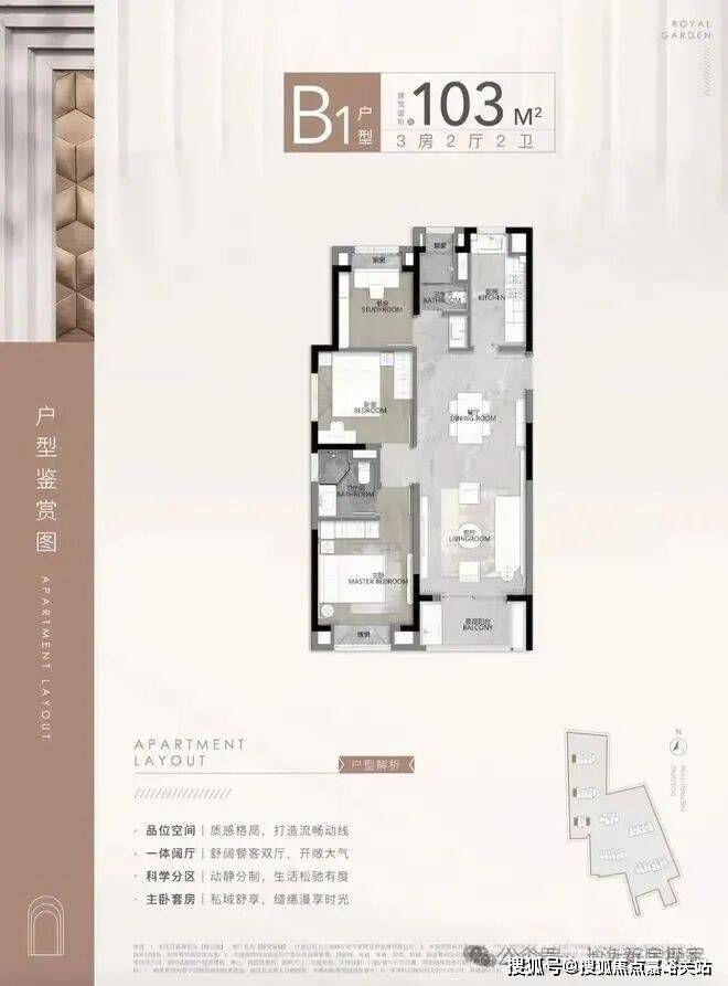 第一个亮点,就是动静分离,功能区和休息区互不干扰,客餐厅、厨房等公共活动区集中在一侧,卧室等休息区全部一侧,保证了私密性!静安玺樾售楼处电话4008569058☑️☑️