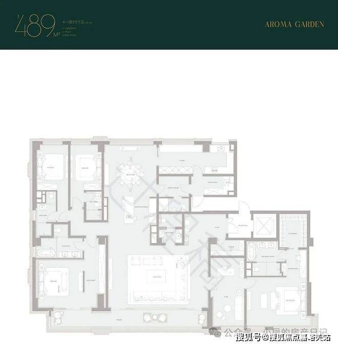 全套房设计:卧室区配置4间套房,均配有独立卫浴;主卧面积约55㎡,配备男女独立衣帽间-7-9