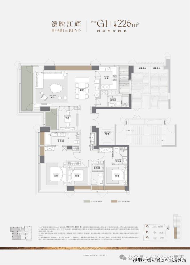 226㎡四房两厅四卫,三卧室南向排布,主卧270°转角无柱直面江景,蝴蝶户型布局,最大程度释放了侧面的采光及观景能力,楼下的园区景观谁看谁沦陷!