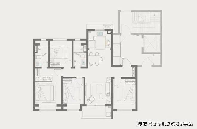 该户型能在约115㎡做到兼顾大4房的功能性和空间尺度,非常难得,更适合四口之家或三代同堂家庭居住。