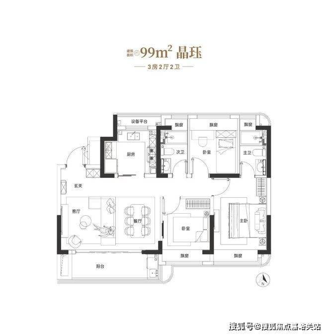 建面约99㎡三房户型图▼