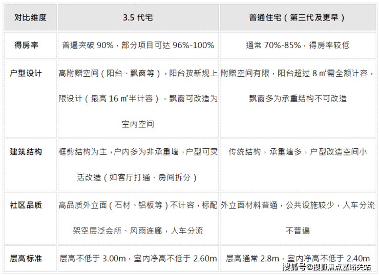 根据上海最新的住宅设计规范,3.5代宅是2025年新规实施后的新一代住宅产品,相比普通住宅(主要指第三代及更早的住宅)在多个方面有显著优势。以下是两者的详细对比: