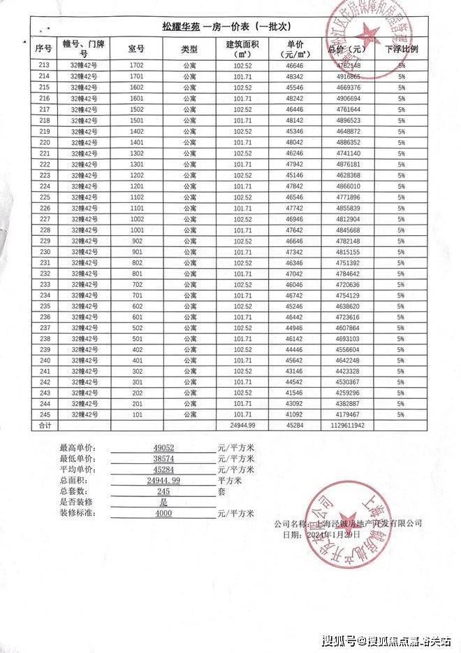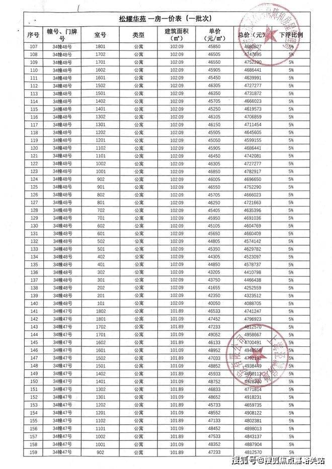「一房一价表」