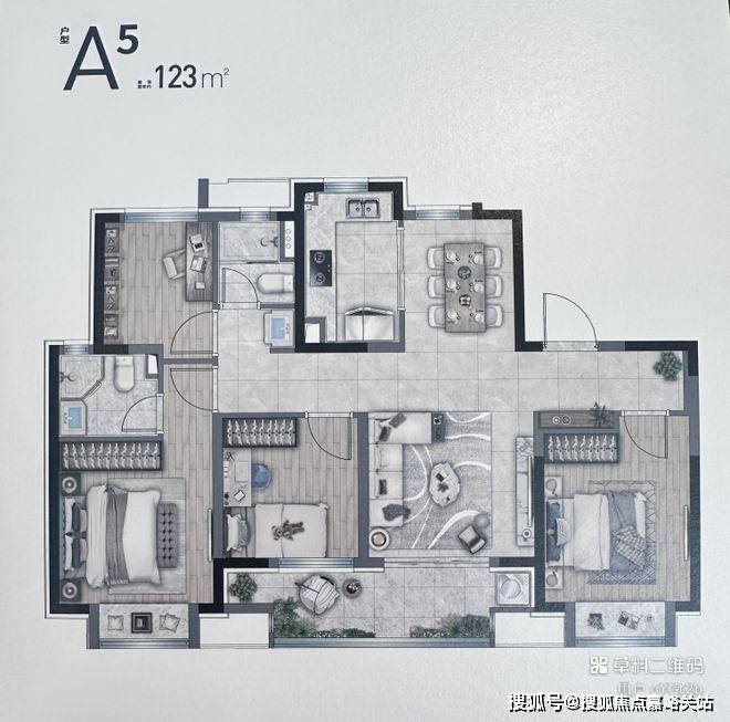 光明星城售楼处电话:400 - 856 - 9058建面约123㎡的4房2厅2卫户型,超大面宽南向阳台、整体南北通透、主卧套房的设计,提升居住空间。