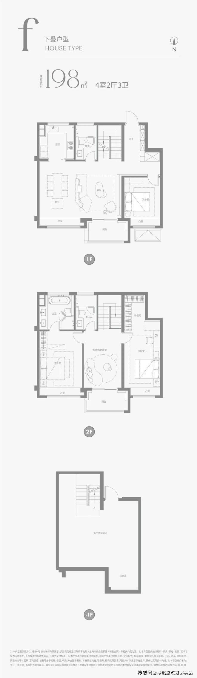 建面约198m²下叠户型图:
