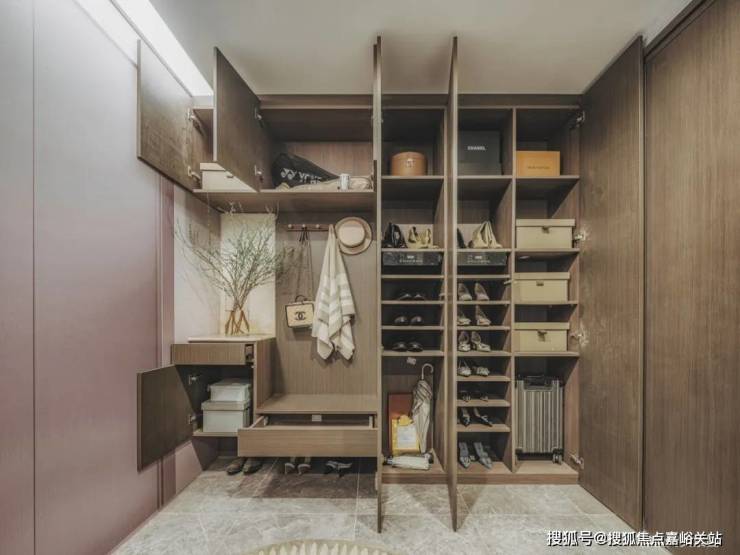 入户有 独立玄关,出入更具仪式感的同时也增加了收纳功能。