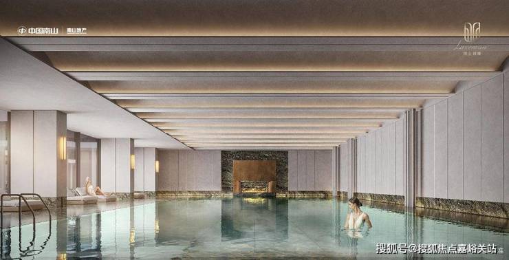 南山璞缦打造约1500m²恒温泳池会所,恒温泳池灵感源自卡地亚顶级珠宝系列海洋之心,整体空间非常高档,呈现出光影交错的画面感。