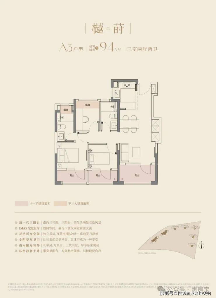 建面约94m3房2厅2卫