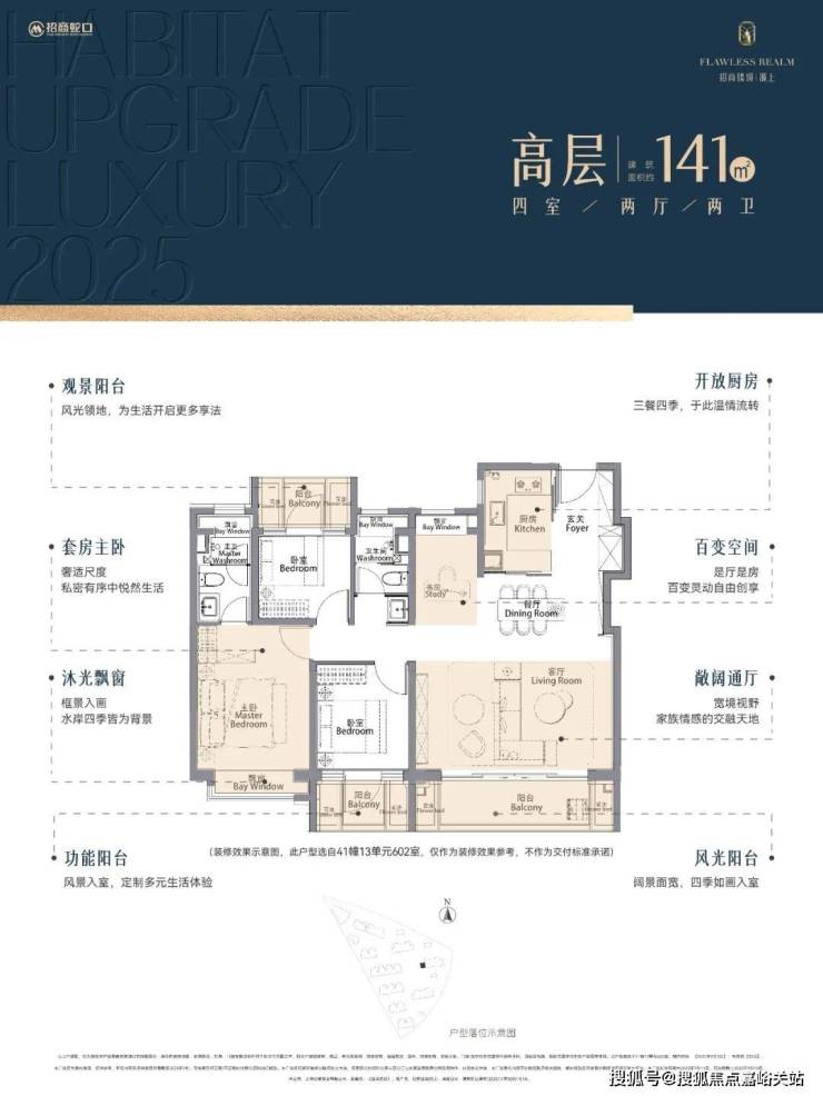 首先,是实用面积的跃升 。建面约105㎡户型的三个阳台只算一半面积,花池不算面积,主卧自带非承重结构的飘窗, 折算下来的空间是实打实的,远超市面上同面积段其他产品 !