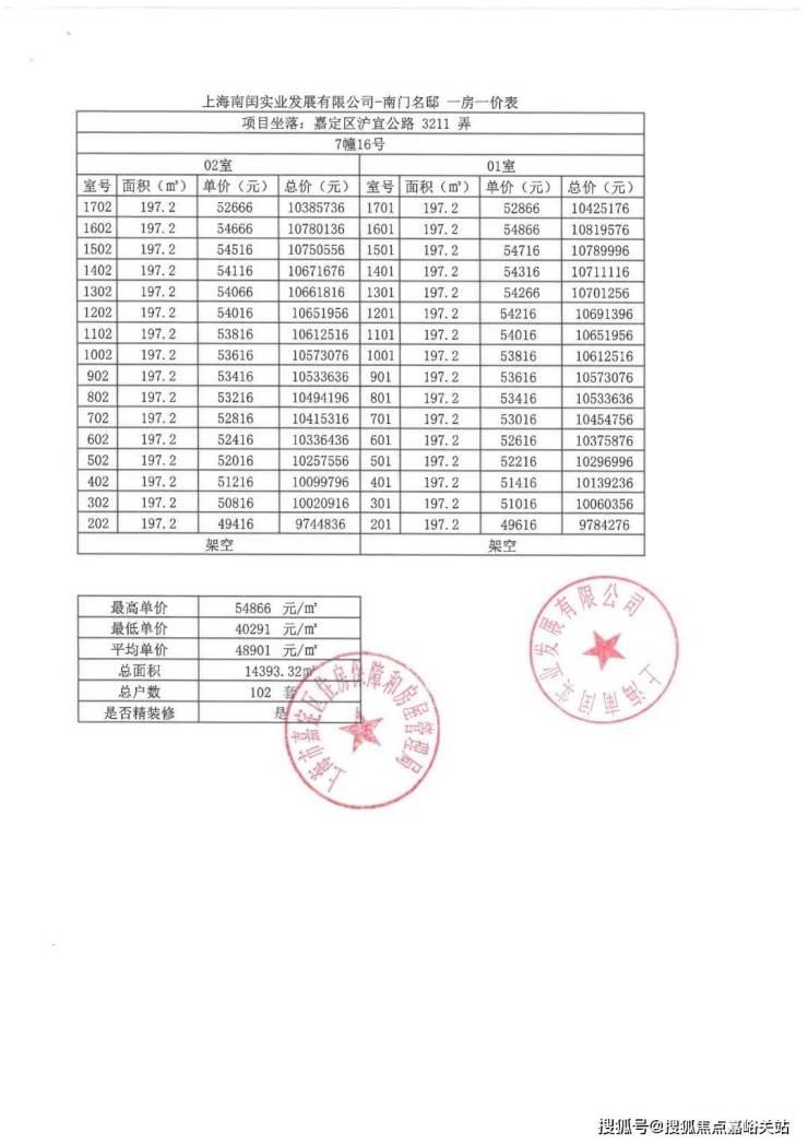附一房一价表: