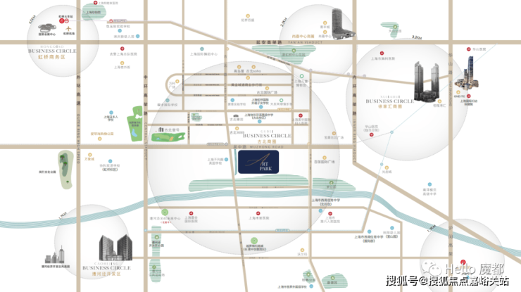 3公里左右可以快速到达爱琴海购物中心、万象城购物中心、徐家汇商圈的恒隆、ITC等。