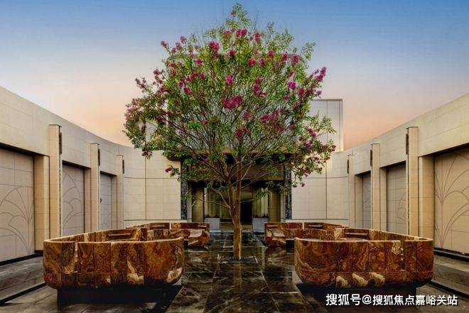 海派光厅之外归家迎宾树木更是由设计师辗转多个城市才寻到的、树龄超60年的福木“紫薇”。
