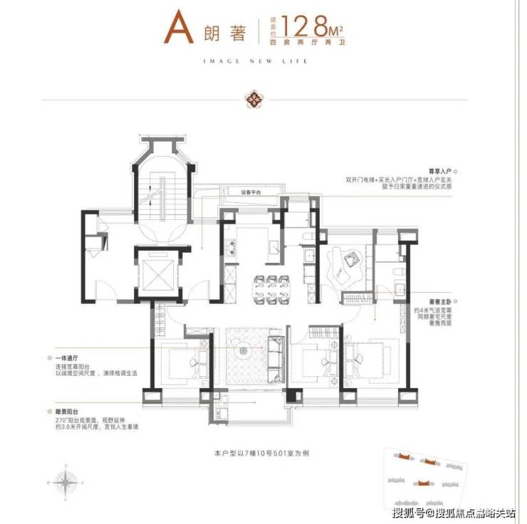同时,项目还有建筑面积约128㎡的奢阔四房: