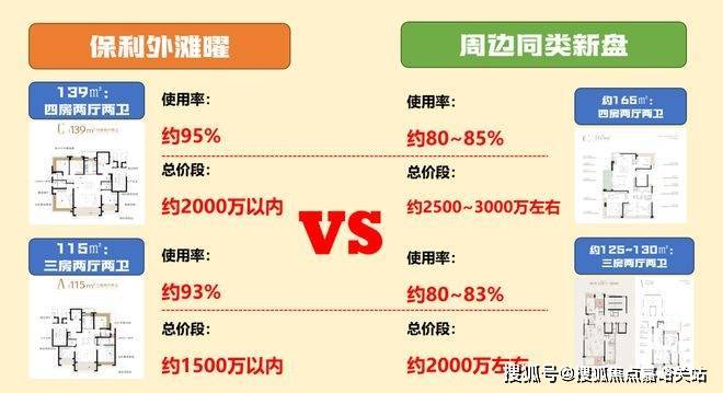 当内环内大多数高层住宅还在为75%-80%的得房率苦苦挣扎时,保利外滩曜凭借“双阳台+全屋飘窗+独立电梯厅”的设计体系,实现了115㎡户型约93%、139㎡户型约95%的惊人实得率!