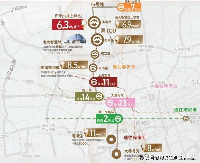 项目与地铁15号线丰翔路站距离约500米,规划22号线,是实打实的中环旁真地铁盘。优越的区域占位,除给保利·海上瑧悦带来了不小的溢价空间,更提升了通勤效率和极大的生活幸福感。15号线与多条线路接轨,快速通达长宁、徐家汇、静安等多个中心区域商圈。