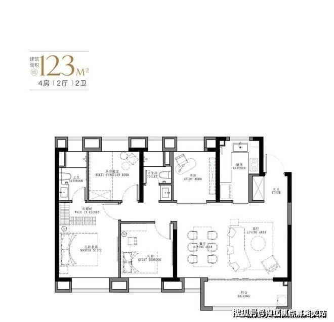产品:103㎡、107㎡的三房两厅两卫及123㎡、129㎡的四房两厅两卫