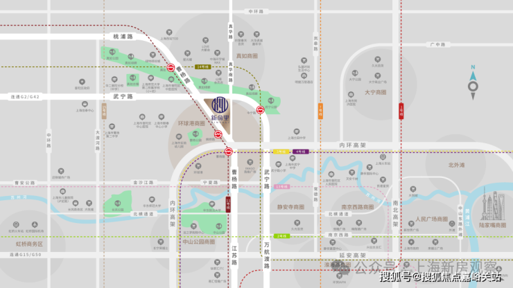 真正的双轨交新盘!临近11号线枫桥路站和真如站,距11号线枫桥路和十四号线中宁路站(即将开通)约300米,同时毗邻内环高架和武宁路,出行十分便捷。