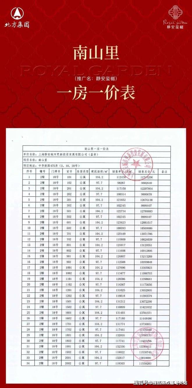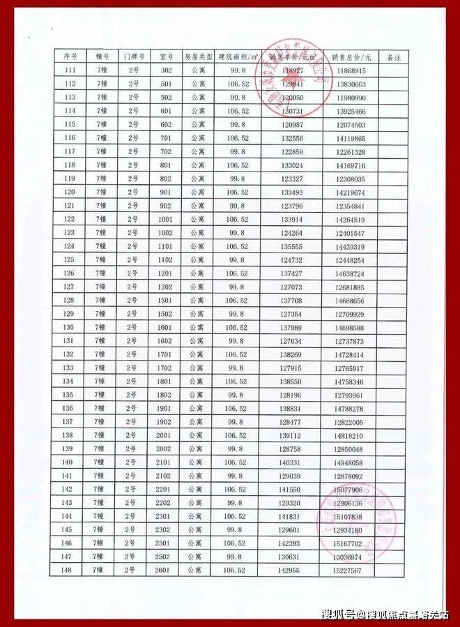 一房一价表如下: